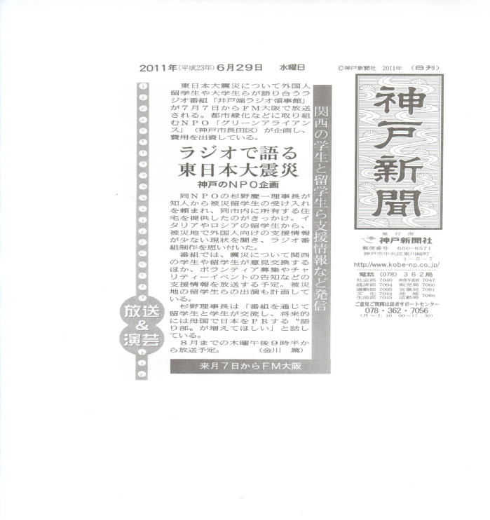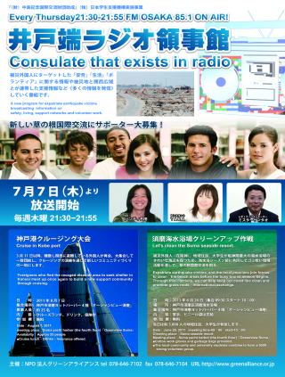 「井戸端ラジオ領事館」収録風景-1 日時:平成23年6月23日 場所:FM大阪スタジオ 「井戸端ラジオ領事館」収録風景-2 日時:平成23年6月26日 場所:須磨ヨットハーバー「オーシャンビュー須磨」 須磨海水浴場クリーンアップ作戦 日時:平成23年6月26日 場所:須磨海水浴場